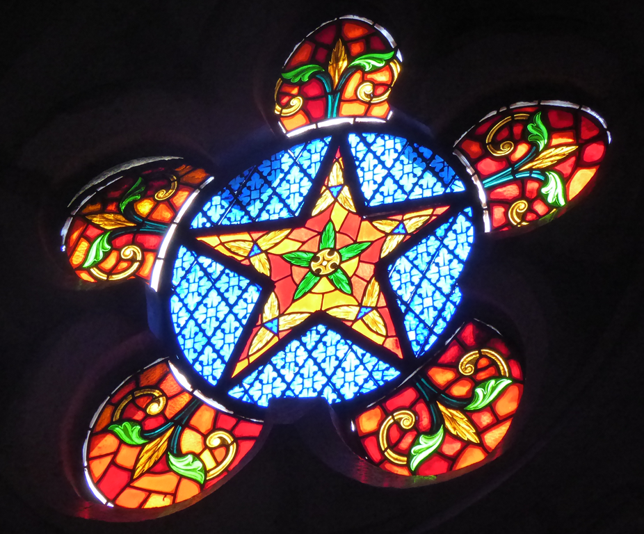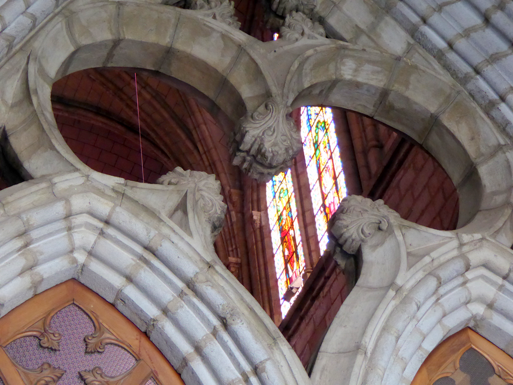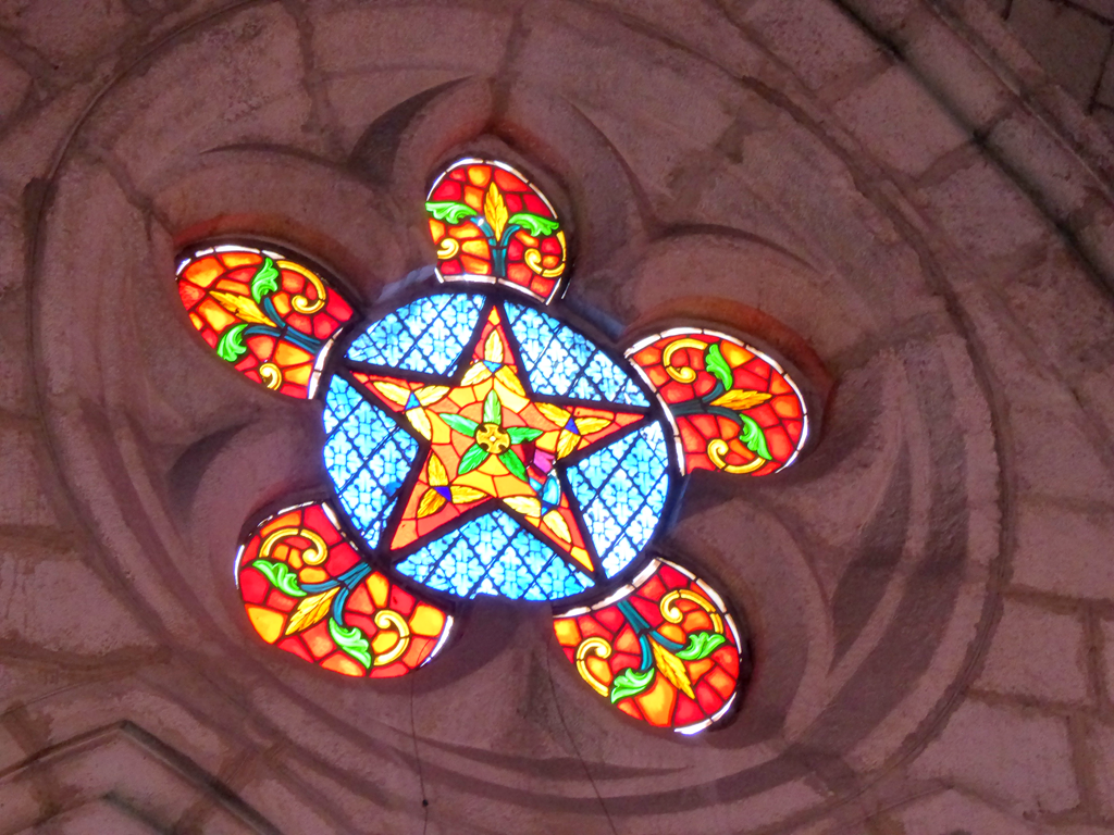 The stained glass had been damaged in some places. The replacement glass did not blend in.