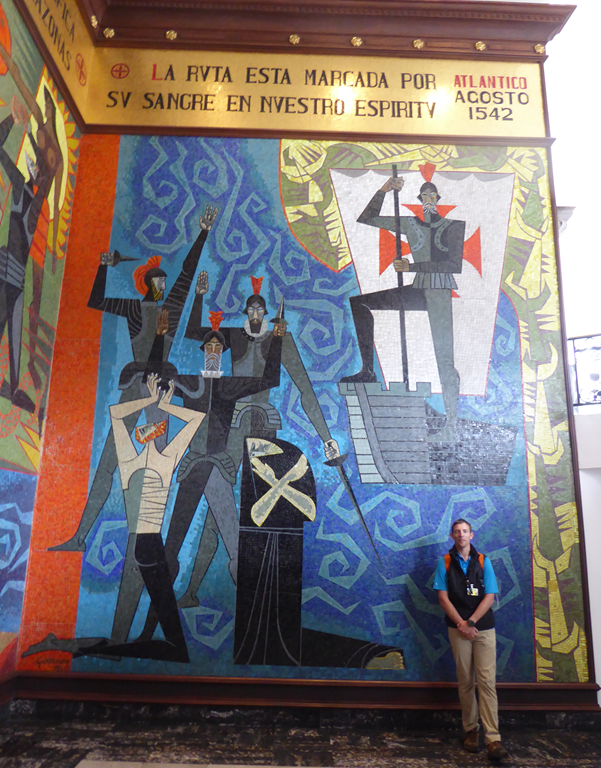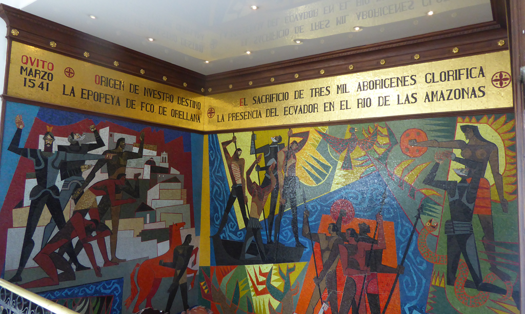 This mural is of the Spanish expedition into the Amazon rainforest.