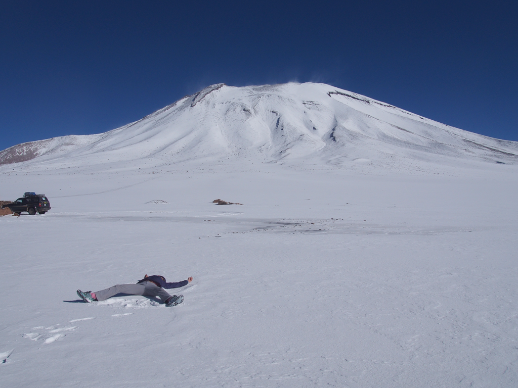 Winter Wonderland Posted on March 27, 2015 10:07 am by Kerri Comment The border crossing into Chile at altitude was quite snowy. So Kerri made a snow angel. It was too dry for snowball fights. 📂This entry was posted in bolivia 📎and tagged uyani