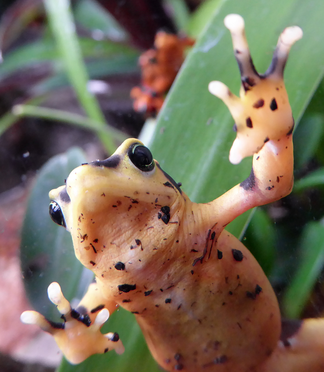 The frogs are in such a warm humid enclosure they don’t mind wandering around all the time. Don’t they look so cool?![]()